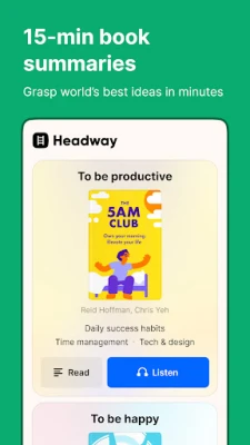 Træt af meningsløs scrolling? Headway forvandler 10-20 minutter af din dag til en meningsfuld selvudviklingsrevolution. Denne trendsættende mikro-læringsapp hjælper dig med at vokse og lære, selv i en travl hverdag.