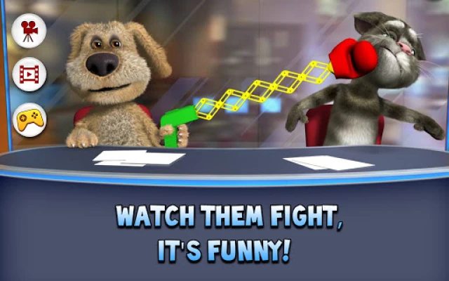 Forestil dig at træde ind i et pulserende tv-studie, hvor de to ikoniske personligheder, Tom og Ben, er klar til at levere underholdning. Disse velkendte værter venter spændt på din stemme. Gentag hvad som helst – en sjov sætning, en hemmelighed eller en melodi – og se hvordan de i skiftende rækkefølge leverer dine ord tilbage med deres helt egen komiske timing. Og hvis du føler dig fræk, kan et let puf eller et svirp på skærmen udløse hylende morsomme fald fra deres stole, hvilket garanterer latteranfald for alle aldre.